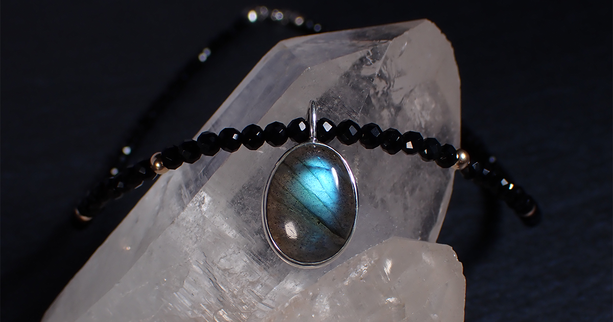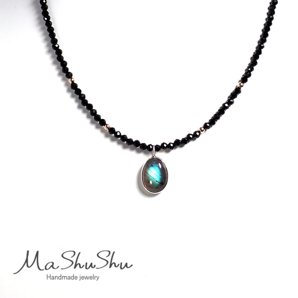 【一点もの】ネックレス ラブラドライト&オニキス -シルバー&10K