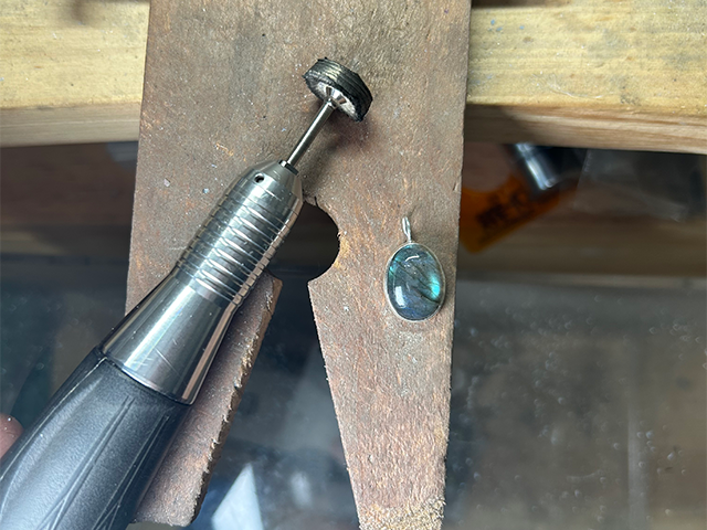 ラブラドライトをペンダントにしたのですが、ルースが少し曇っていたので自分で磨いてみました。